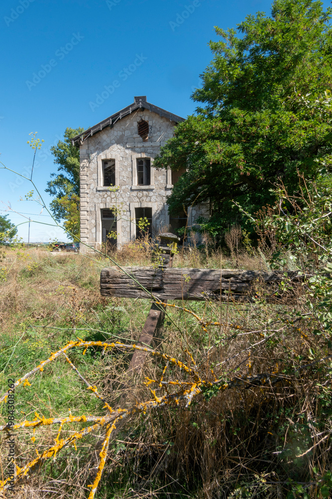 Old ruined building of the Roa de Duero train station, in the province of Burgos, Spain.