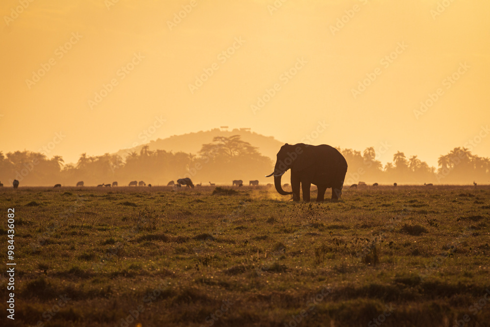 Elephant Silhouette at Sunset in Amboseli National Park, Kenya – Majestic African Wildlife on the Savanna