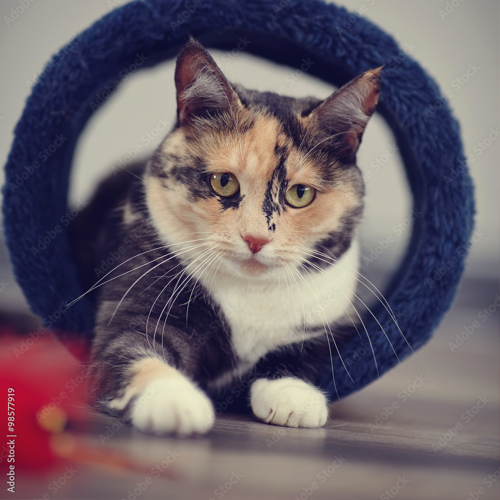Domestic cat of a multi-colored color