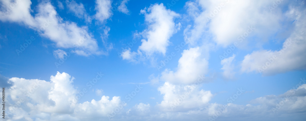 Natural blue cloudy sky. Panoramic background