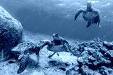 Hawaiian Green Sea Turtle Cruising in the warm waters of the Pacific Ocean in Hawaii