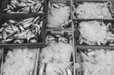 Fresh various fish at the street seafood market in Asia in Vietnam