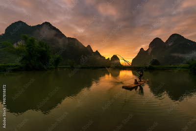 Rice terrace paddle field in sunrise at Phong Nam, Trung Khanh, Cao Bang, Vietnam