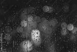 rain drops on window surface with colorful traffic bokeh light in background