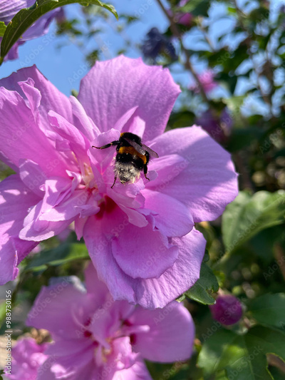 Ardennes Rose of Sharon or Hibiscus syriacus, a pink flower that grows in a Greek garden. Flowers and nature of Greece