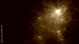 energievoll hell strahlender Stern im Universum, Weltall, Galaxie, funkeln, Sonne, Glühen, Glitzer, Cosmos, Wissenschaft, Forschung, Technik, Science Fiction, goldgelb, schwarz