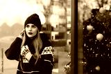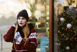 Street portrait of young beautiful woman with long blond hair wearing stylish winter clothes. Model looking aside. Female fashion concept