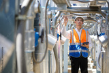 Engineer or technician checking air conditioner control valve at plumbing systems