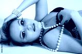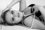 young attractive woman in black lingerie and a pearl necklace