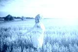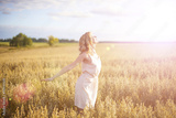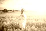 Beautiful woman walking on wheat field