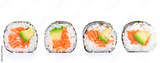 close-up of traditional fresh japanese seafood sushi rolls on a