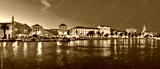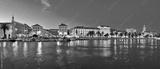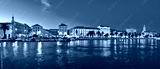 Split waterfront evening blue panorama