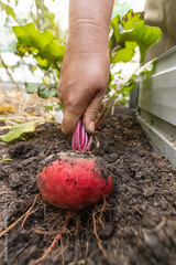 Farmer is pulling a fresh red beetroot