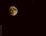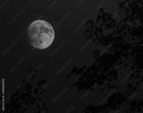 Yellow and orange moon in the night with silhouetted tree limbs in the foreground