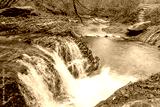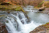autumn scenery with waterfall. travel destination in carpathian mountains of ukraine. cascades of the river turychkain fall season