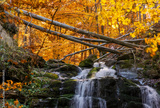 autumn scenery with waterfall. travel destination in carpathian mountains of ukraine. cascades of the river shypit in fall season