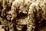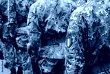 soldiers of the Italian army with the Italian coat of arms with the green white and red flag lined up wearing the camouflage uniform