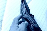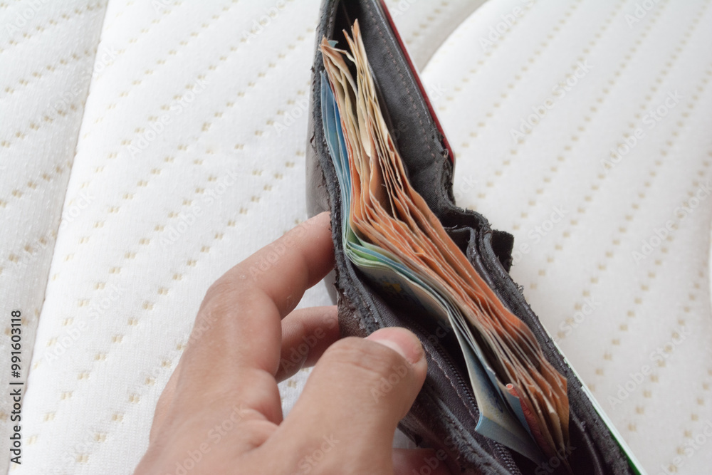 European banknotes in a wallet in an upright position