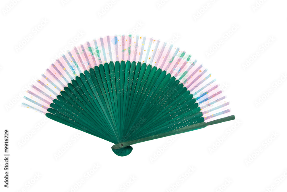 green wooden fan isolated on the white background