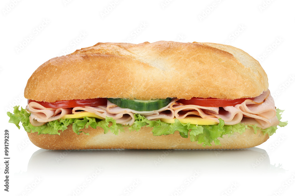 Sandwich Baguette belegt mit Schinken seitlich Freisteller