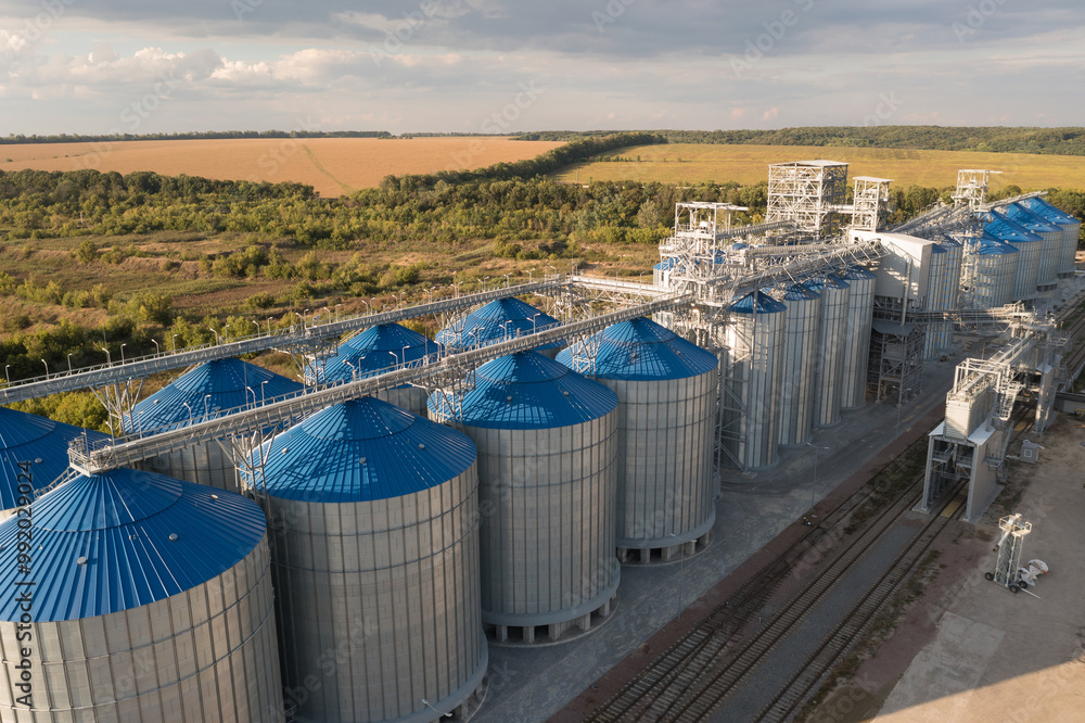 Aerial View of Grain Silos in Rural Landscape