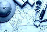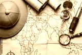 An old brass compass on map background