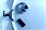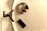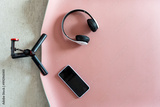 Yoga mat with phone and earphone for exercise