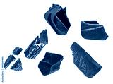Broken chocolate bar pieces flying. Chocolate isolated on white background. Milk Chocolate explosion with cocoa crumbs and nuts, Top view. Flat lay. Pattern.