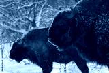 Bison winter day in the snow