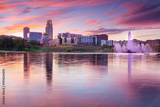 Omaha, Nebraska, USA. Cityscape image of downtown Omaha, Nebraska with reflection of the skyline at beautiful autumn sunset.
