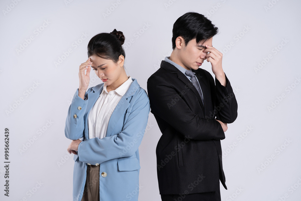 Image of an Asian business couple posing on a white background.