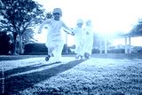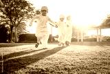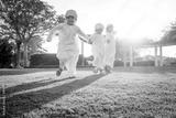 Children playing together in Dubai in the park. Group of kids wearing traditional kandura white dress from arab emirates
