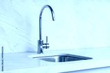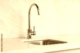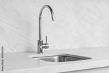 Modern home kitchen, brand new stainless steel metal faucet sink