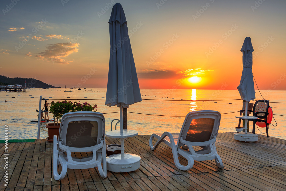 Beautiful sunrise at the beach of Turkish Riviera, Tekirova near Kemer. Turkey
