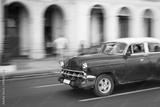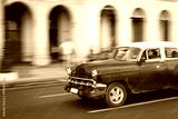 Panning with old car on streets of Havana, Cuba