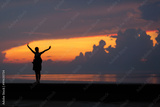 Silhouette of Happiness woman stay outdoor under sunlight of sun