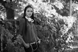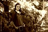 Girl with headphone in the park.