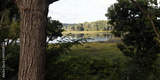 Turner Lake fen and native prairie grasses and trees in autumn at Moraine Hills State Park in McHenry County, Illinois