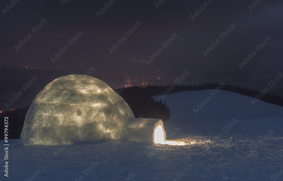 night scene with igloo