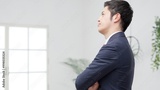 横向きで腕組みをして悩むビジネスマン