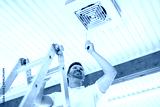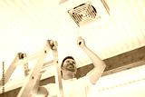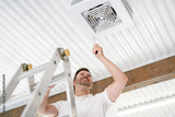A men inspector or Fixing a garage heater