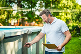 engineer inspecting the build of swimming pool.