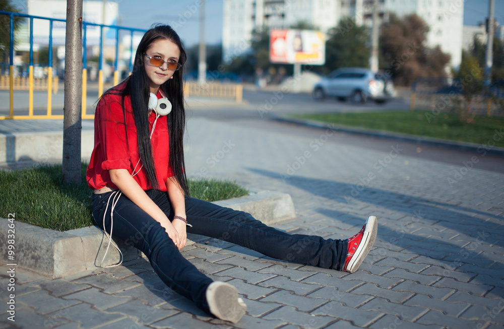 Girl and headphones.