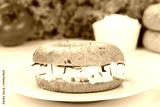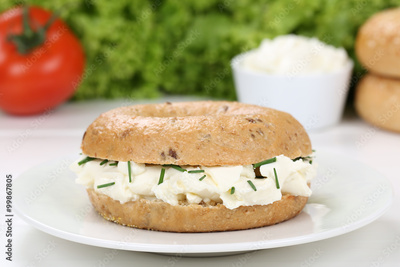 Bagel mit Frischkäse Käse Brötchen zum Frühstück