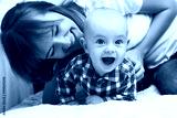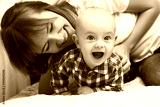 Portrait of smiling young beautiful woman playing with cute baby. Happy family concept