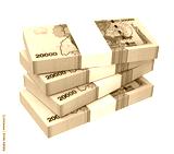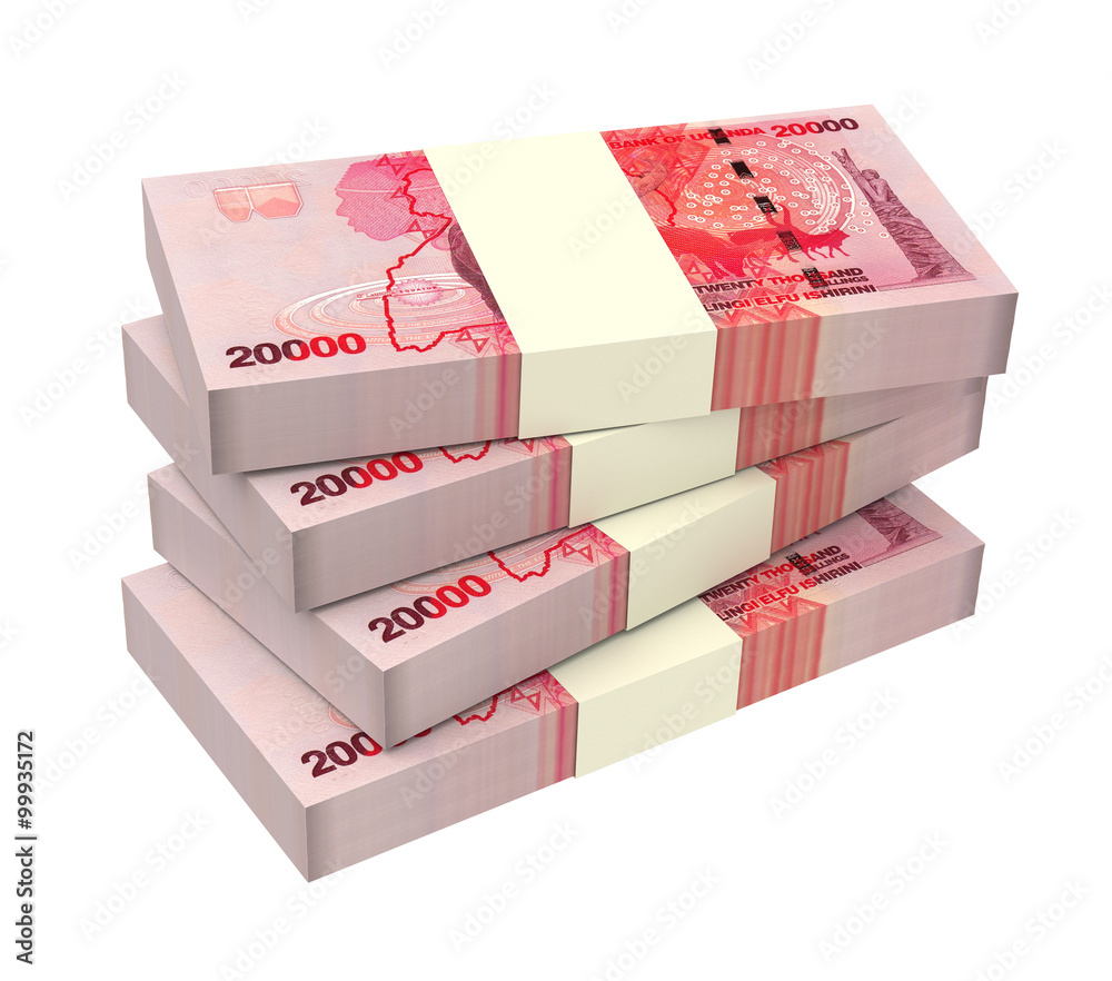 Ugandan shillings bills isolated on white background. Computer generated 3D photo rendering.
