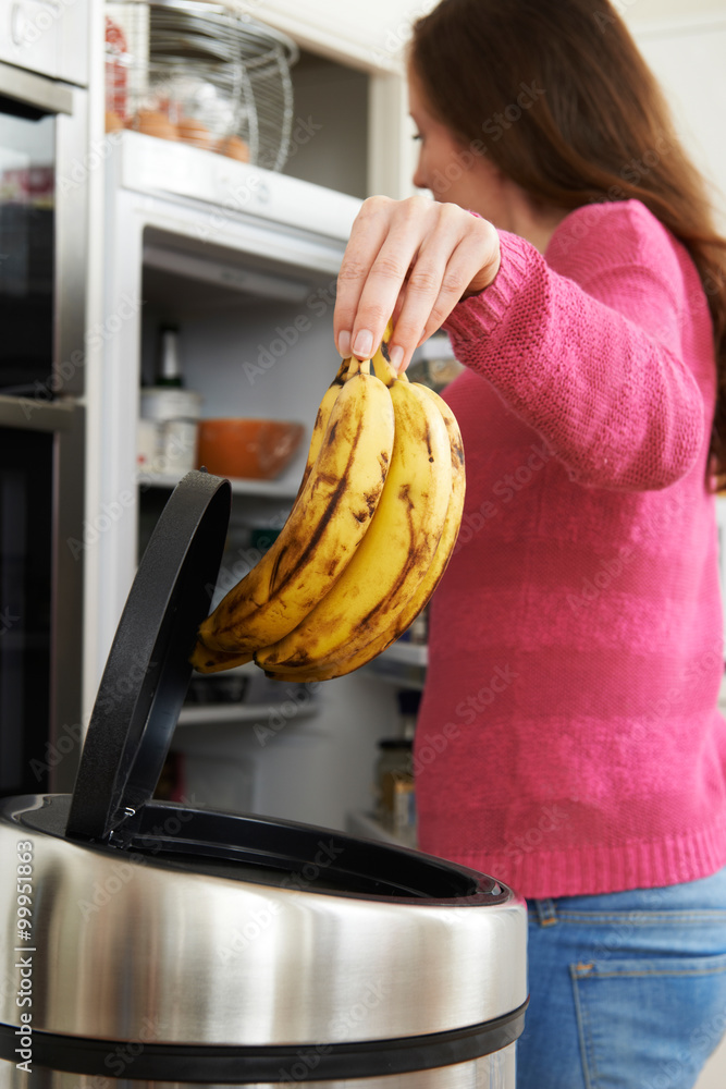Woman Throwing Away Out Of Date Food In Refrigerator