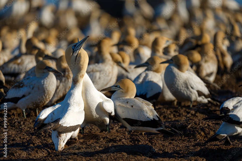 Image Number A1R540732. Male and female Cape gannet (Morus capensis) birds engaging in mating ritual. Bird Island, Lambert's Bay, Western Cape, South Africa.