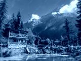 Riverside Cabin in Mountain Landscape